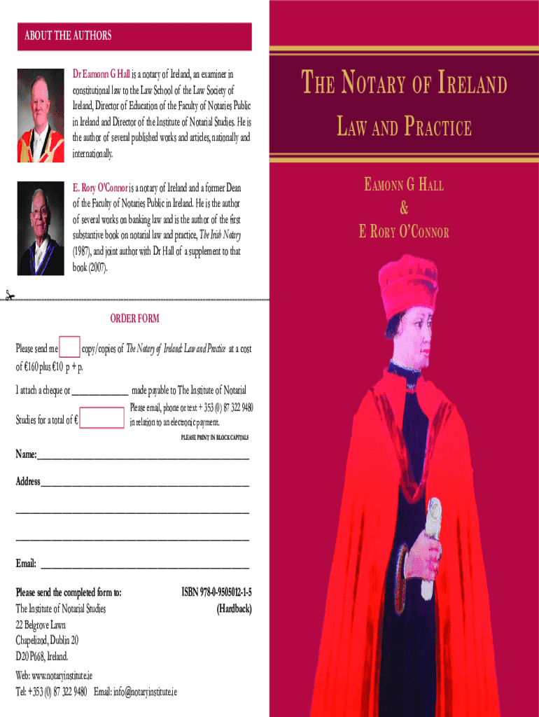 ABOUT THE AUTHORS Dr Among G Hall is a notary of Ireland, an examiner in constitutional law to the Law School of the Law Society of Ireland, Director of Education of the Faculty of Notaries Public