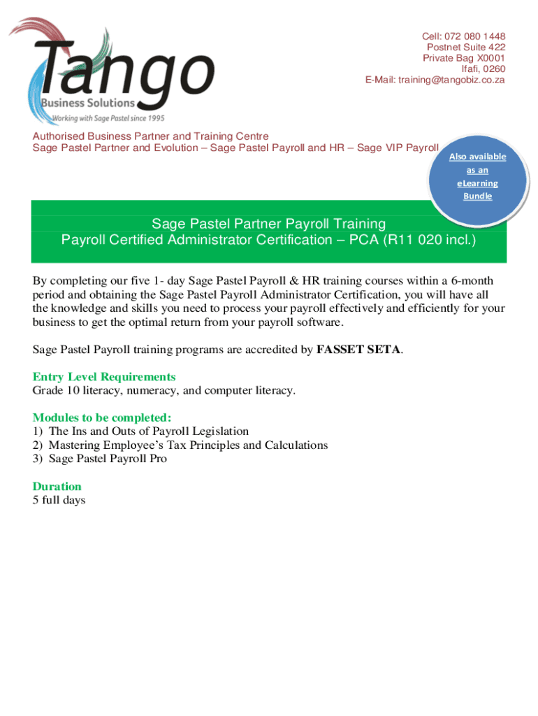 Email: training@tangobiz.co.zaAuthorised Business Partner and Training Center