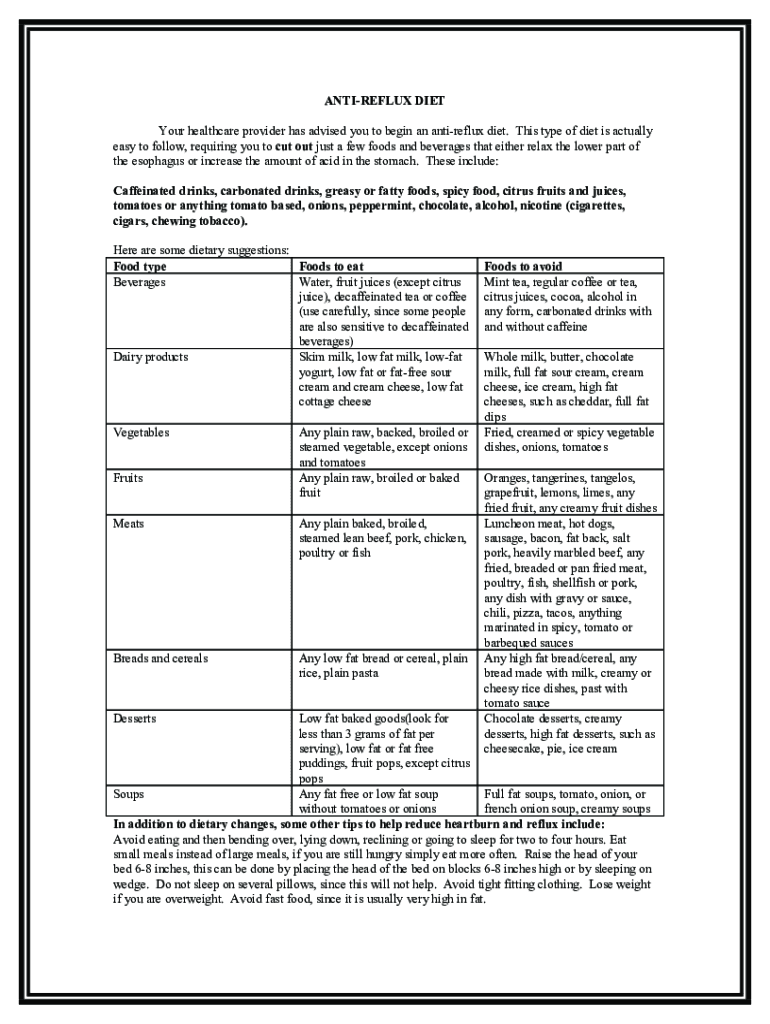 Fill out your gerd diet foods to online with pdfFiller!