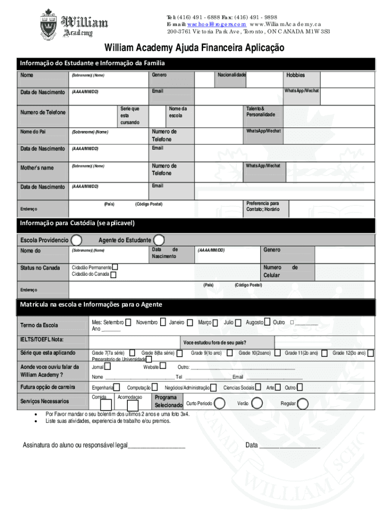 Email: wschool@rogers.com www.WilliamAcademy.ca