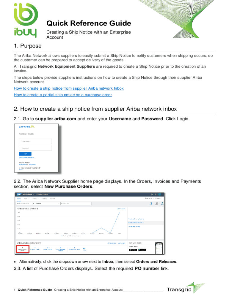 Quick Reference Guide Creating a Ship Notice with an Enterprise Account1. Purpose The Aria Network allows suppliers to easily submit a Ship Notice to notify customers when shipping occurs, so the