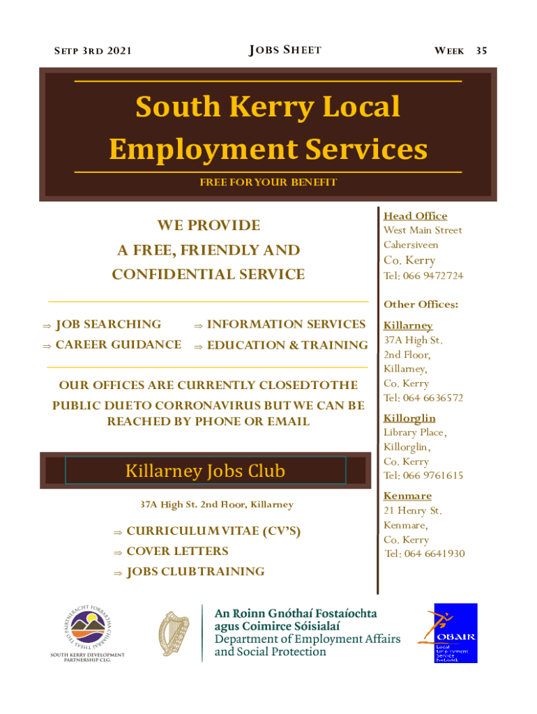 J OBS S MEETS ETP 3 RD 2021W EEK 35South Kerry Local