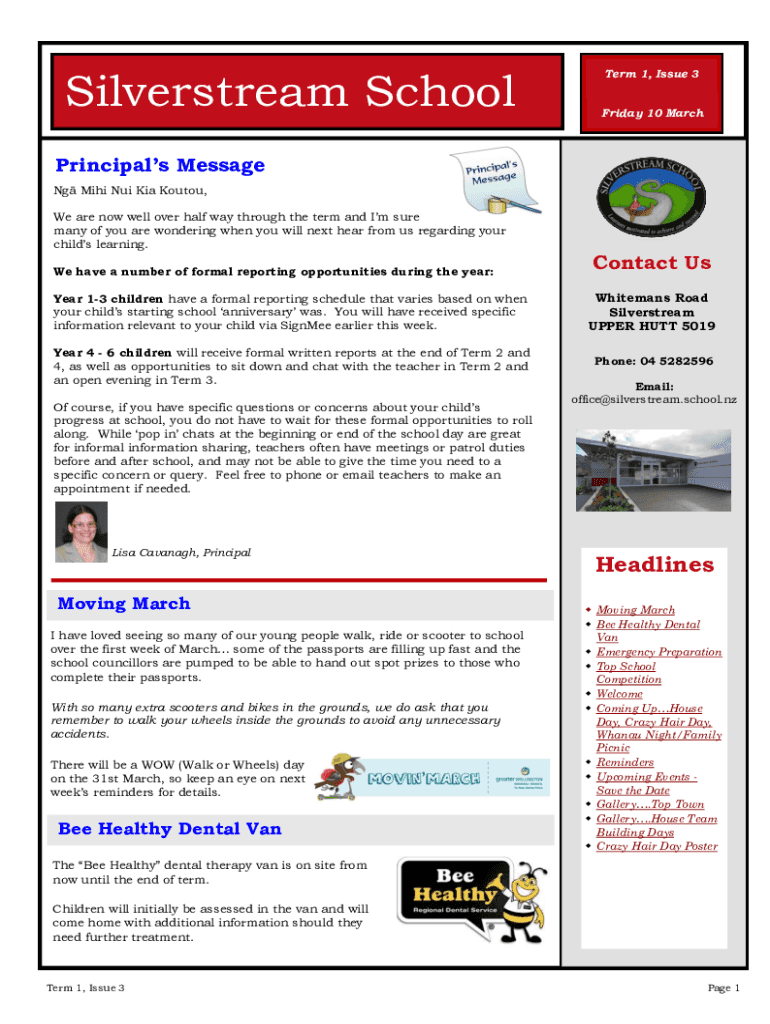Silver stream Schoolmarm 1, Issue 3 Friday 10 MarchPrincipals Message NG Mini New Kia Mouton, We are now well over halfway through the term, and I'm sure many of you are wondering when you will next