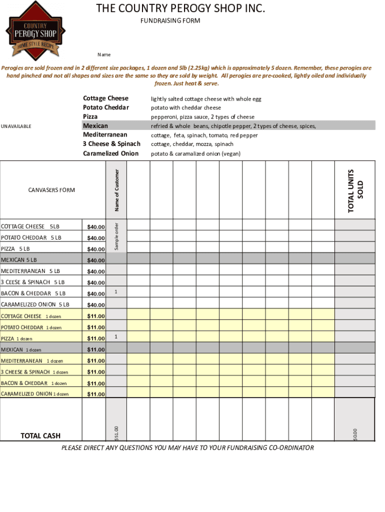 THE COUNTRY PARODY SHOP INC. dfgsdfdgggggggggggggggggggggggggggggggggggFUNDRAISING Forename m organization___ Pierogies are sold frozen and in 2 different size packages, 1 dozen and 5lb (2.25 kg)