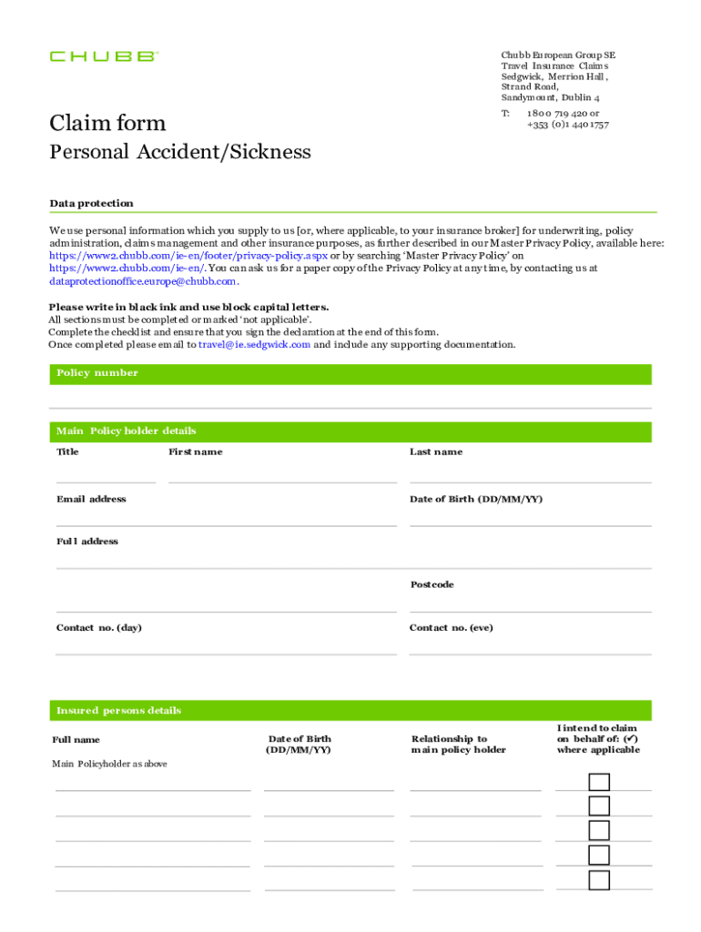 +353 (0)1 440 1757Personal Accident/Sickness
