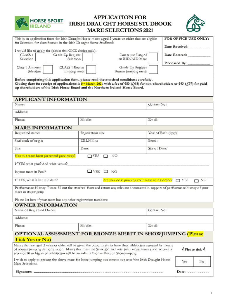 Get the free APPLICATION FOR IRISH DRAUGHT HORSE STUDBOOK ...