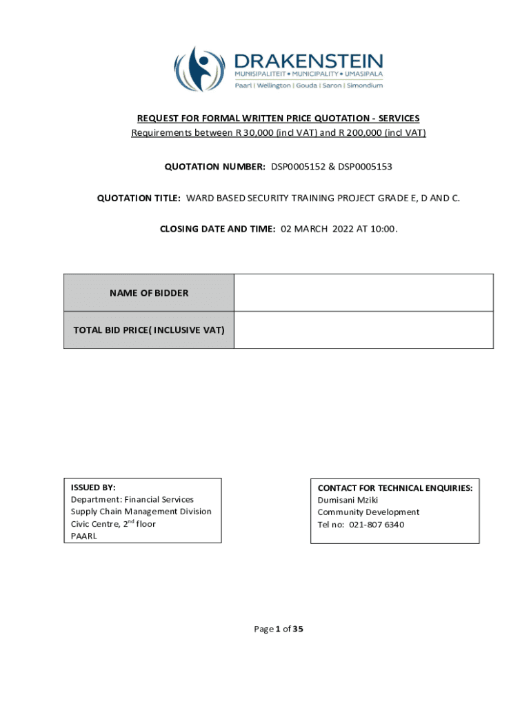 Requirements between R 30,000 (incl VAT) and R 200,000 (incl VAT)