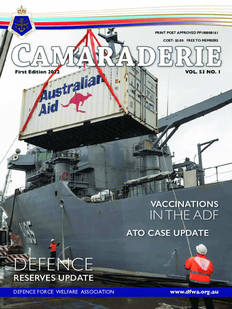 PRINT POST APPROVED PP100008161 COST: $5.00. FREE TO MEMBERSVACCINATIONSIN THE ADF ATO CASE UPDATEDEFENCERESERVES UPDATE Defense FORCE WELFARE Association.DFA.org.international GOLDEN CROWN ANNOUNCEMENT