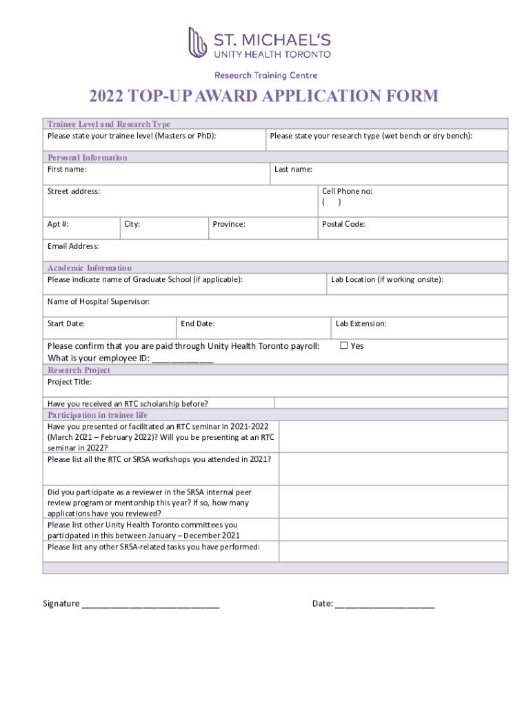 Get the free 2022 SMH RTC Top Up Award Application Form.docx