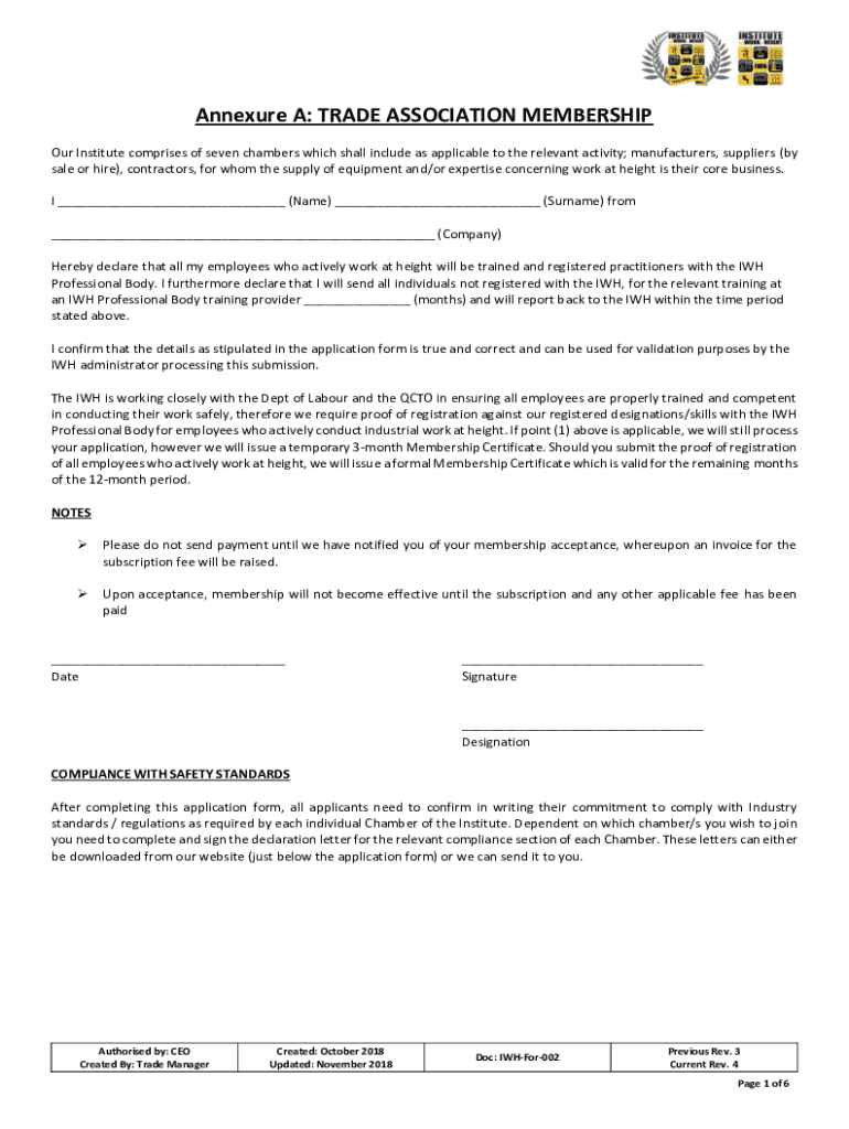 Appendix A: TRADE ASSOCIATION MEMBERSHIP Our Institute comprises seven chambers which shall include as applicable to the relevant activity; manufacturers, suppliers (by sale or hire), contractors,