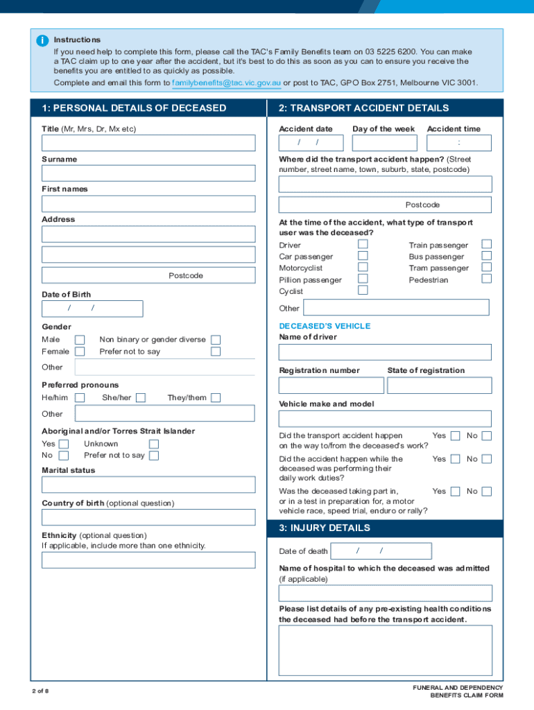 FUNERAL AND DEPENDENCY BENEFITS CLAIM FORM Please use this form to make a TAC claim for funeral (including burial and cremation) expenses and/or dependency benefits for a person who has died as a