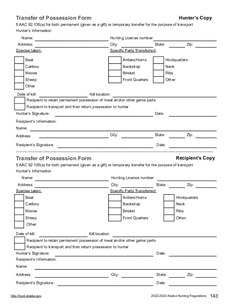 Transfer of Possession Forerunners Copy5 AAC 92.135(a) for both permanent (given as a gift) or temporary transfer for the purpose of transport