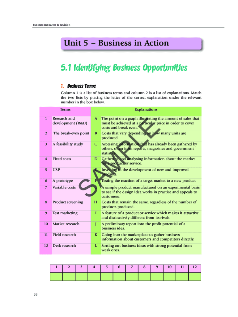 Business Express Resource Book 2016.exp_Business Workout 07/09/2016 15:18 Page 66Business Resources & Revisionist 5 Business in Action 5.1 Identifying Business Opportunities 1. Business Terms Column