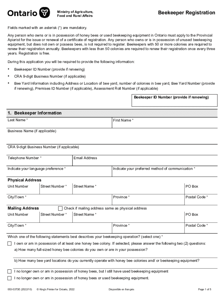 Beekeeper RegistrationMinistry of Agriculture,