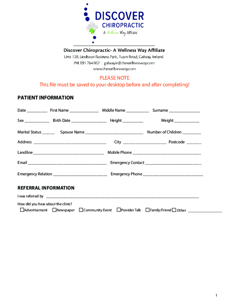 Get the free New Patient Intake Form - Chiropractic, Health and Wellness