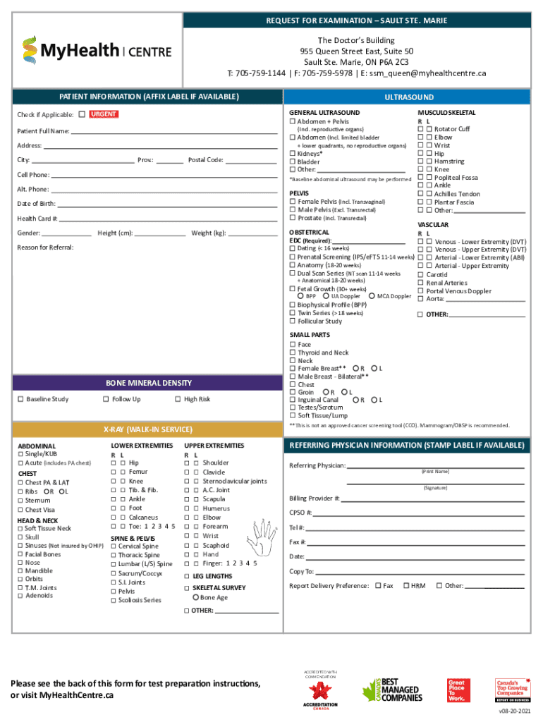 To fill out Sault Ste. Marie Ultrasound X-ray, patients need to provide their personal information, medical history, and any specific instructions from their healthcare provider.