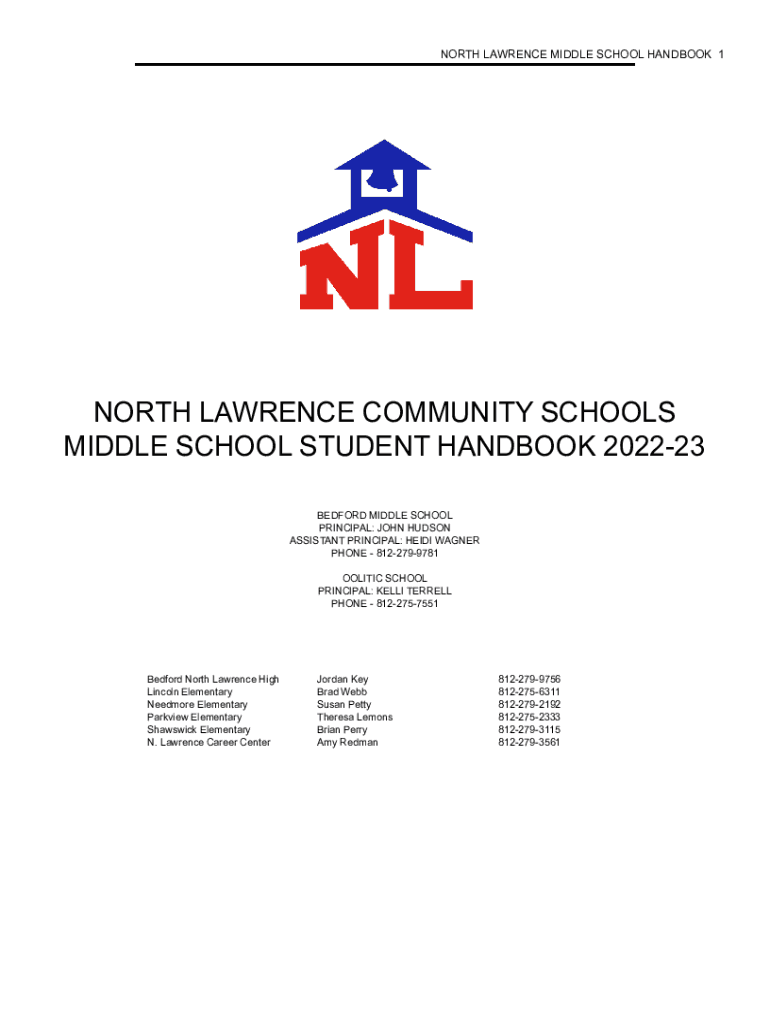 NORTH LAWRENCE MIDDLE SCHOOL HANDBOOK 1NORTH LAWRENCE COMMUNITY SCHOOLS MIDDLE SCHOOL STUDENT HANDBOOK 202223 BEDFORD MIDDLE SCHOOL PRINCIPAL: JOHN HUDSON ASSISTANT PRINCIPAL: HEIDI WAGNER PHONE 8122799781