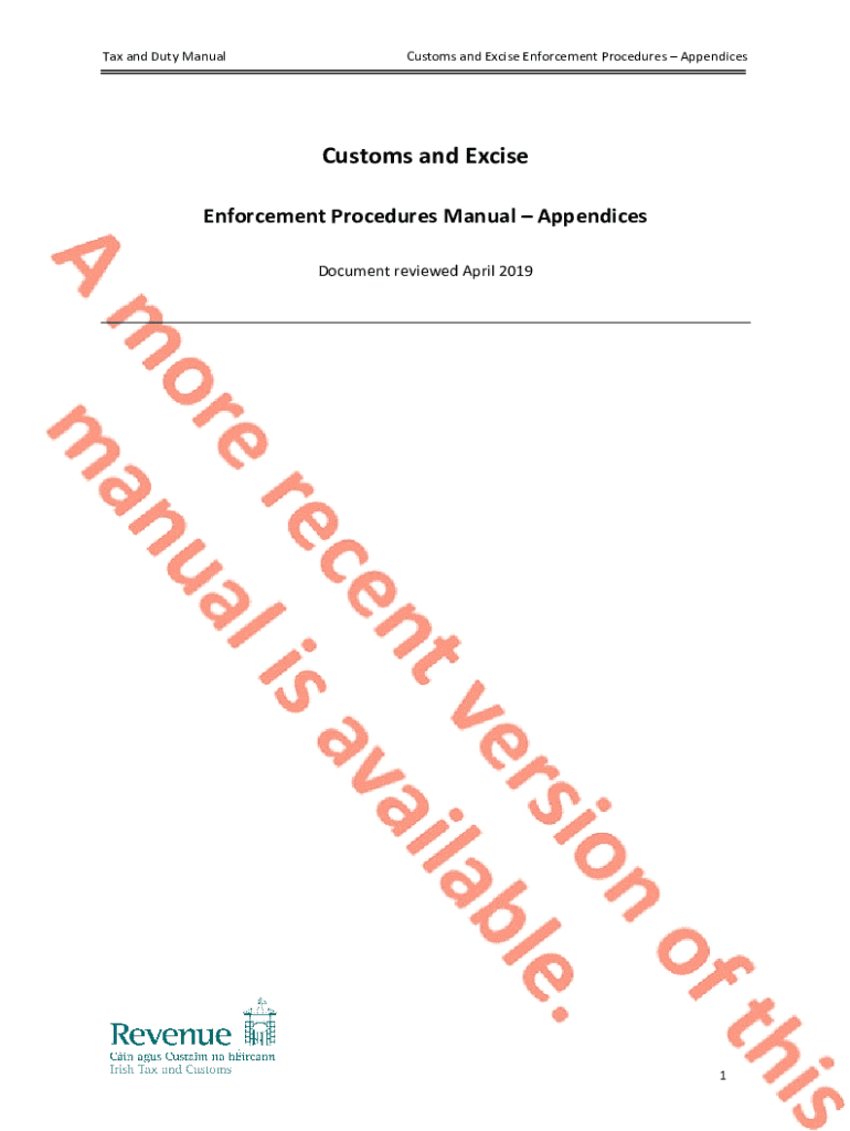 Tax and Duty ManualCustoms and Excise Enforcement Procedures AppendicesCustoms and Excise Enforcement Procedures Manual Appendices Document reviewed April 20191Tax and Duty ManualCustoms and Excise