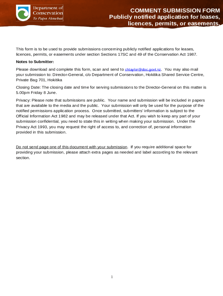 Instructions for the form OBJECTION OR SUBMISSION Publicly notified ...