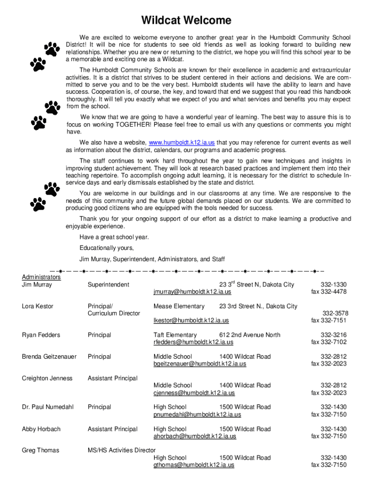 Get the free Wildcat Welcome - Humboldt Community School District