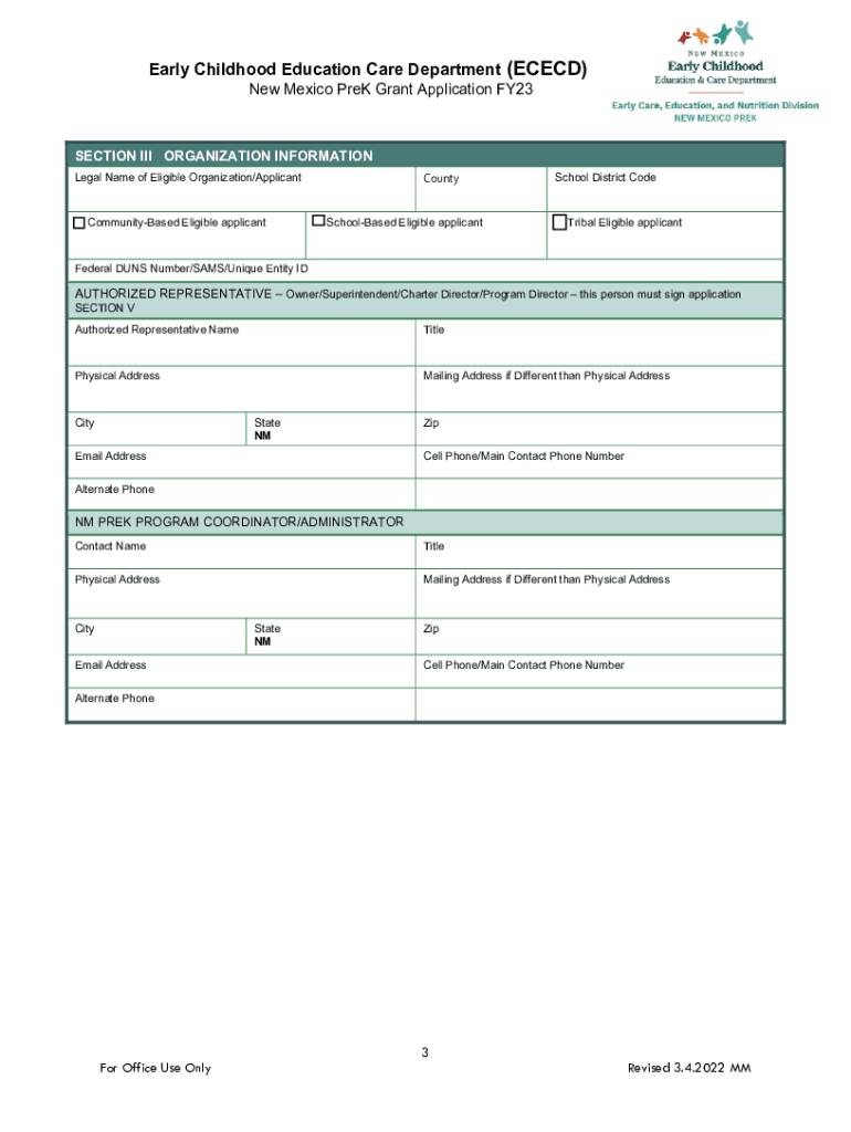 Early Childhood Education Care Department (ECDCD) New Mexico Prey Grant Application FY23INTRODUCTION NM PREY GRANT AWARDS THE PREKINDERGARTEN GRANT WILL BE MULTIYEAR GRANT AWARDS FOR FISCAL YEAR 2023,