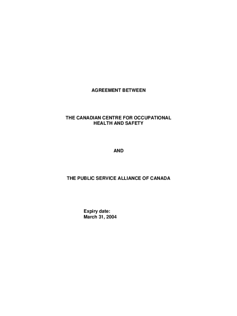 HEALTH AND SAFETYANDTHE PUBLIC SERVICE ALLIANCE OF CANADAExpiry date: