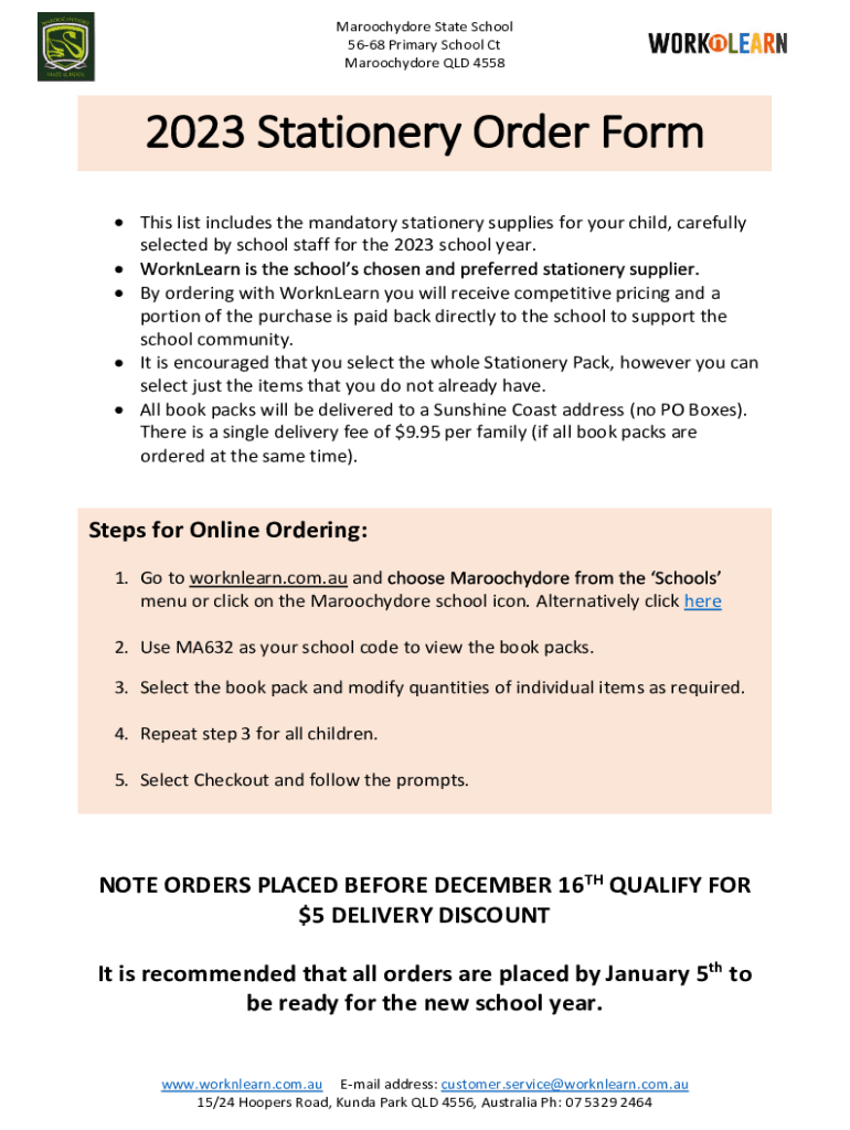 Maroochydore State School 5668 Primary School Ct Maroochydore QLD 4558This list includes the mandatory stationery supplies for your child, carefully selected by school staff for the 2023 school year.
