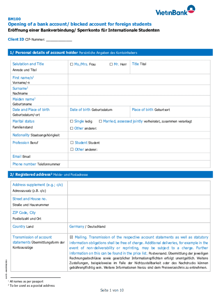 Get the free German Blocked Account as a Proof of Financial Funds ...