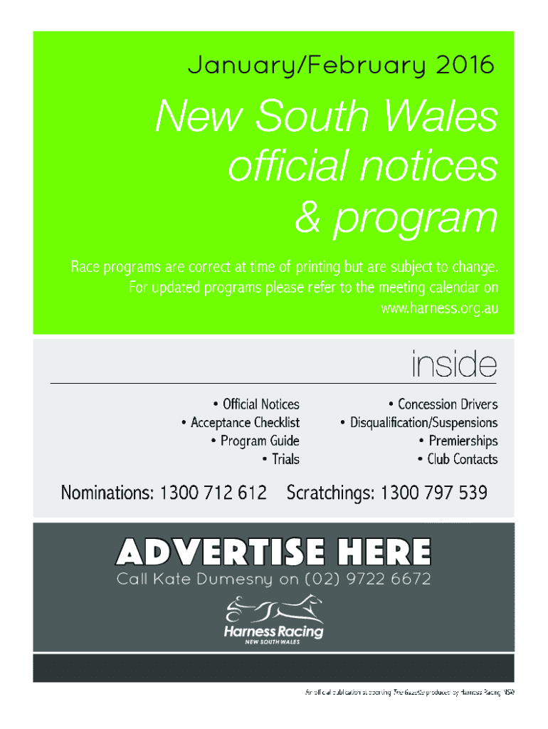 January/February 2016Advertise hairball Kate Demesne on (02) 9722 6672HARNESS RACING NEW SOUTH WALES