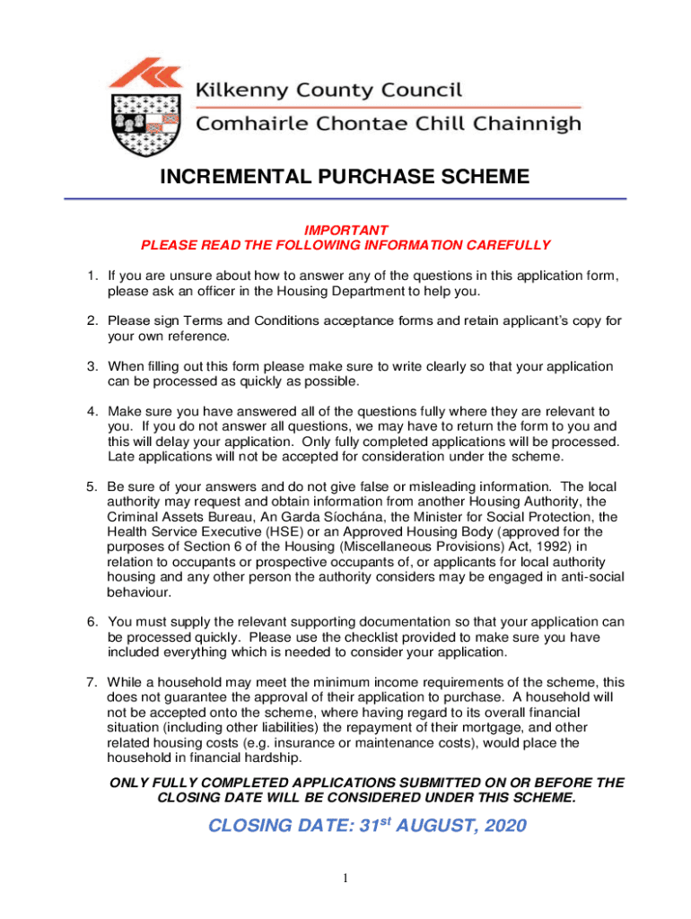 INCREMENTAL PURCHASE SCHEME IMPORTANT PLEASE READ THE FOLLOWING INFORMATION CAREFULLY 1. If you are unsure about how to answer any of the questions in this application form, please ask an officer