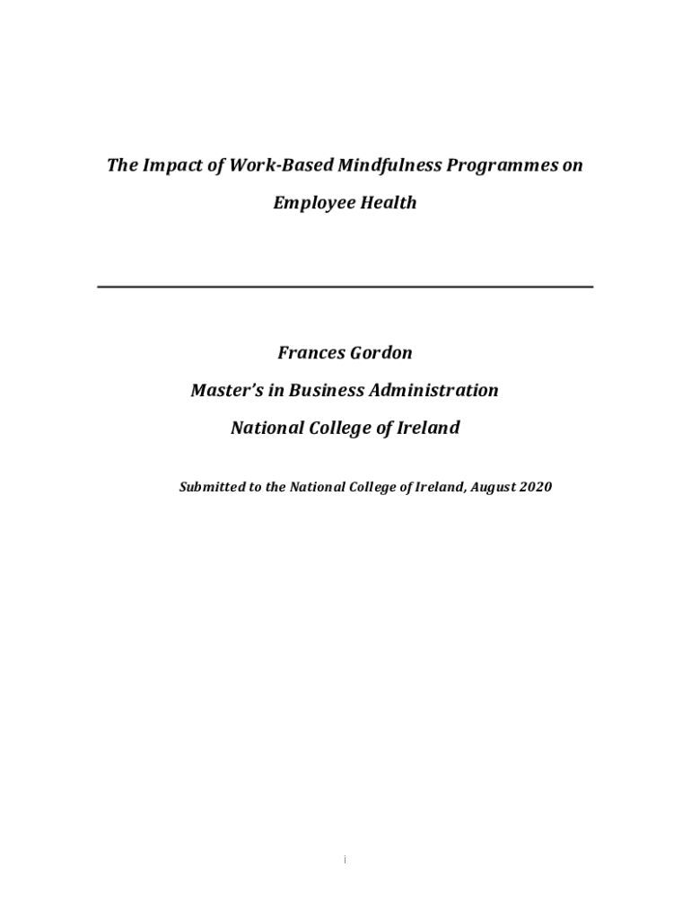 The Impact of Workbasket Mindfulness Programs on Employee Health Frances Gordon Masters in Business Administration National College of Ireland Submitted to the National College of Ireland, August