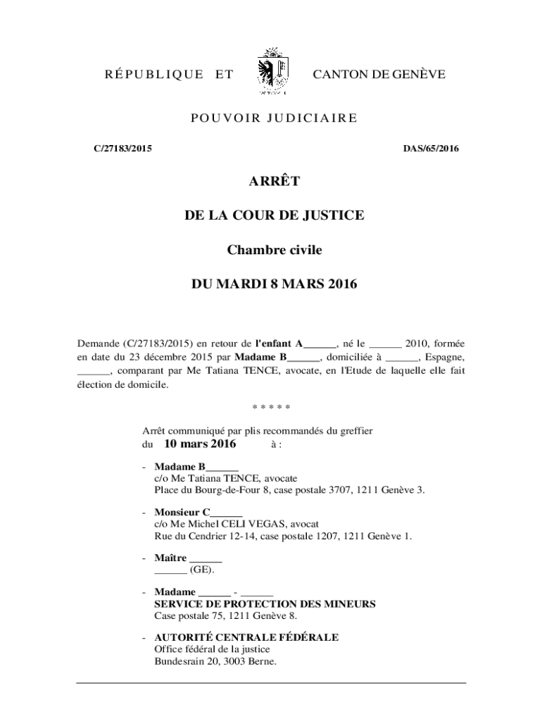 Get the free Demande (C/27183/2015) en retour de l'enfant A, n le 2010, forme