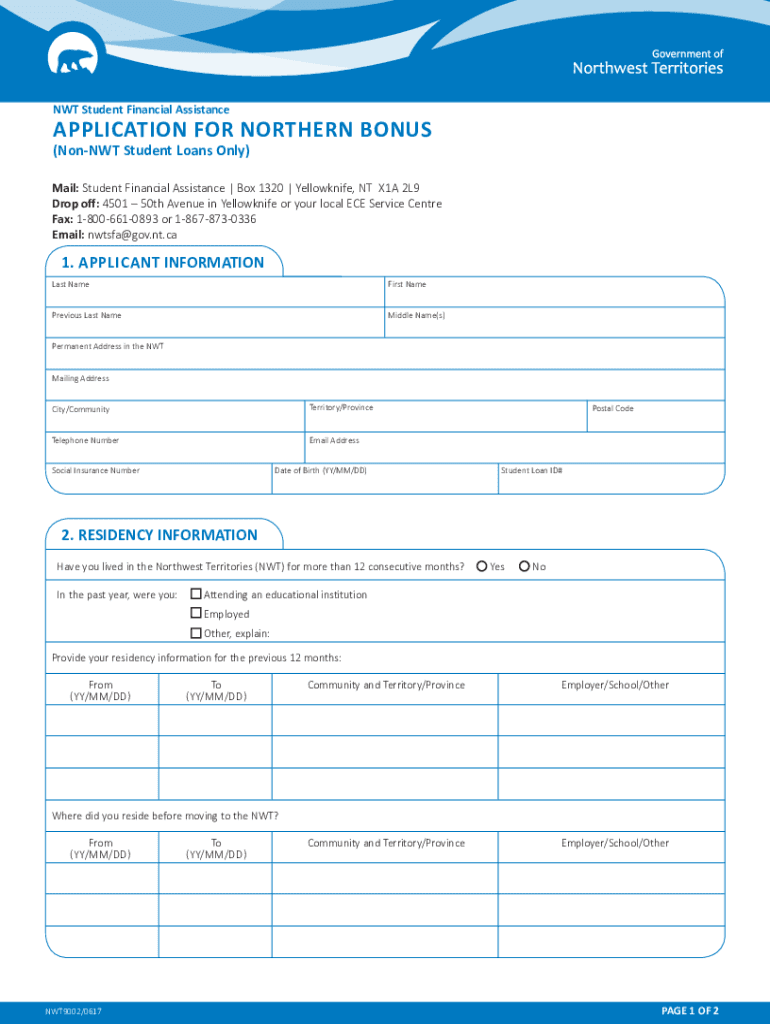 Get the free NWT Student Financial Assistance Northern Bonus for Non ...