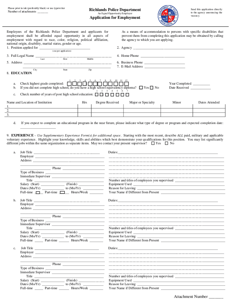 Please print in ink (preferably black) or use typewriterRichlands Police DepartmentNumber of attachments ___Send this application directly