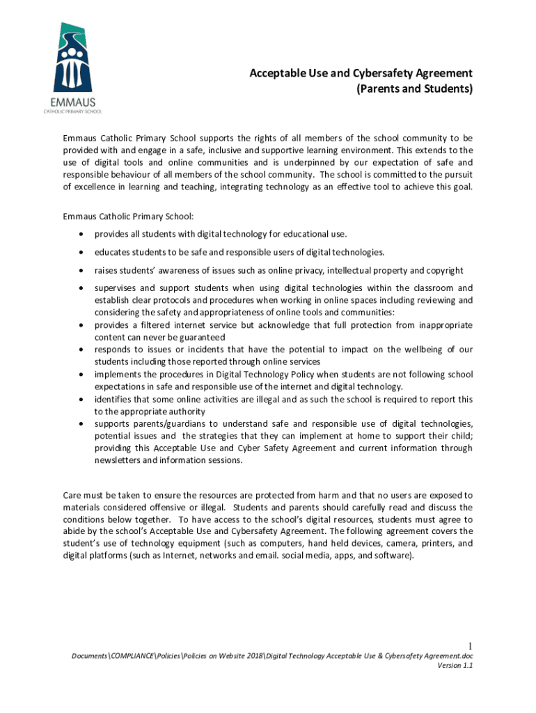 Get the free Acceptable Use and Cyber Safety Agreement - Squarespace