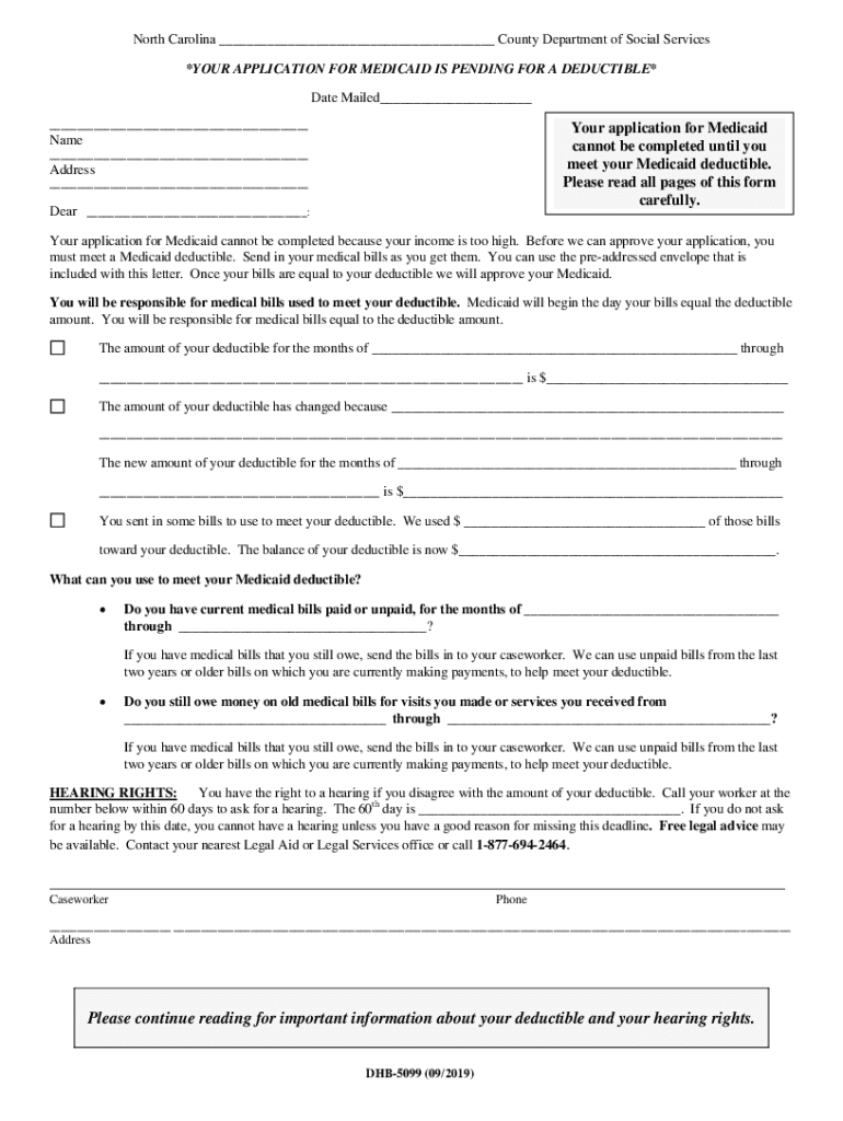 Get the free dma.5099.pdf. Your Application for Medicaid is Pending for a Deductible
