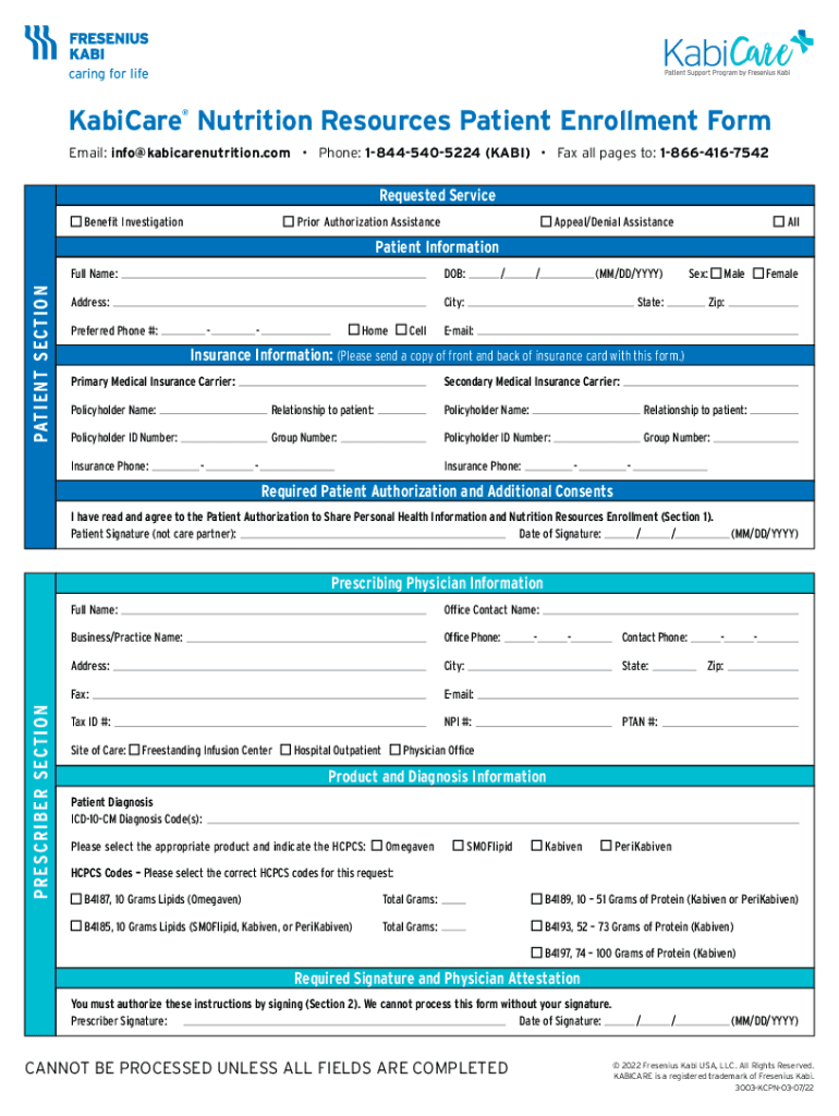 Kabicare nutrition resources patient can be filled out online or through a paper form provided by the program.