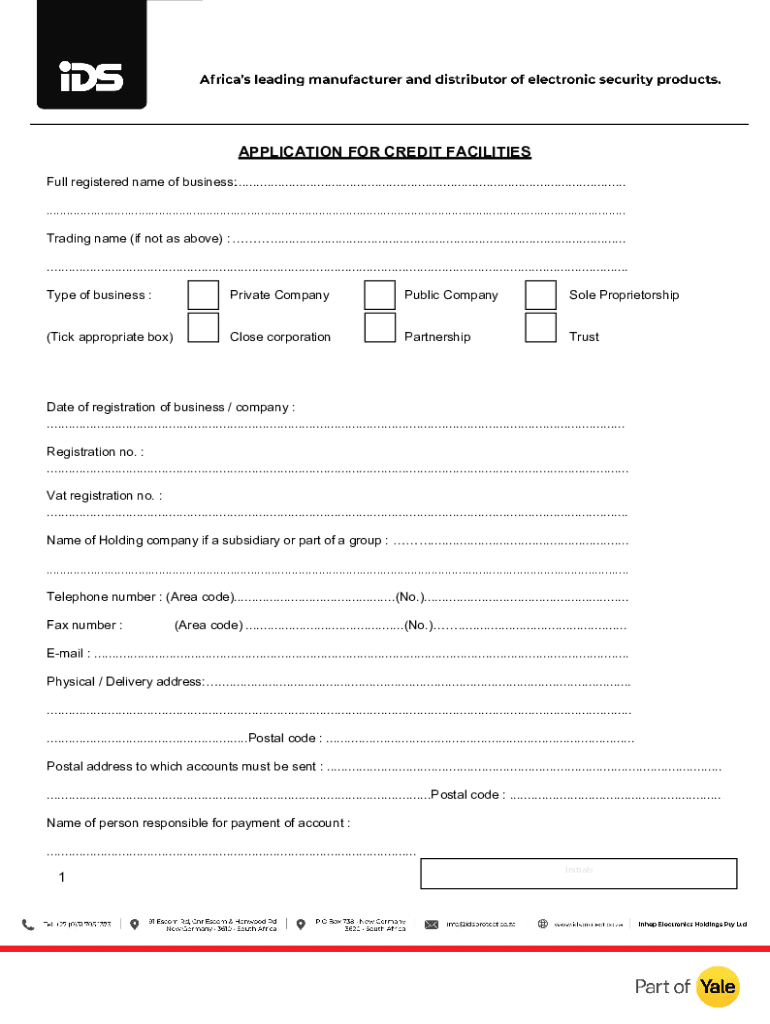APPLICATION FOR CREDIT FACILITIES Full registered name of business:............................................................................................................. ..........................................................................................................................................................................