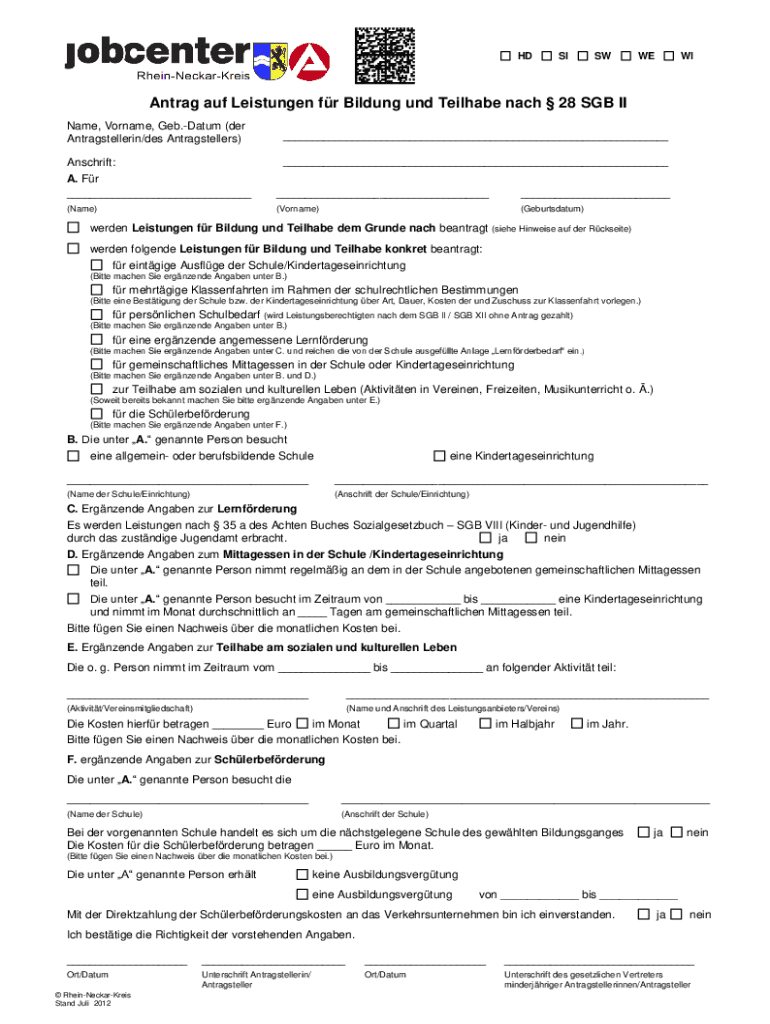 .HDSISWWEWIAntrag AUF Lasting for Building UND Palace each 28 SGB II