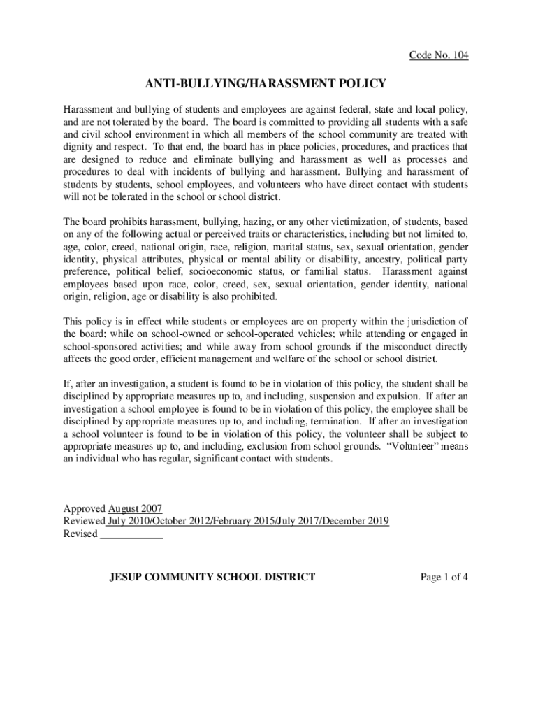Get the free Anti-Bullying/Harassment Policy - Madrid Community Schools - jesup k12 ia