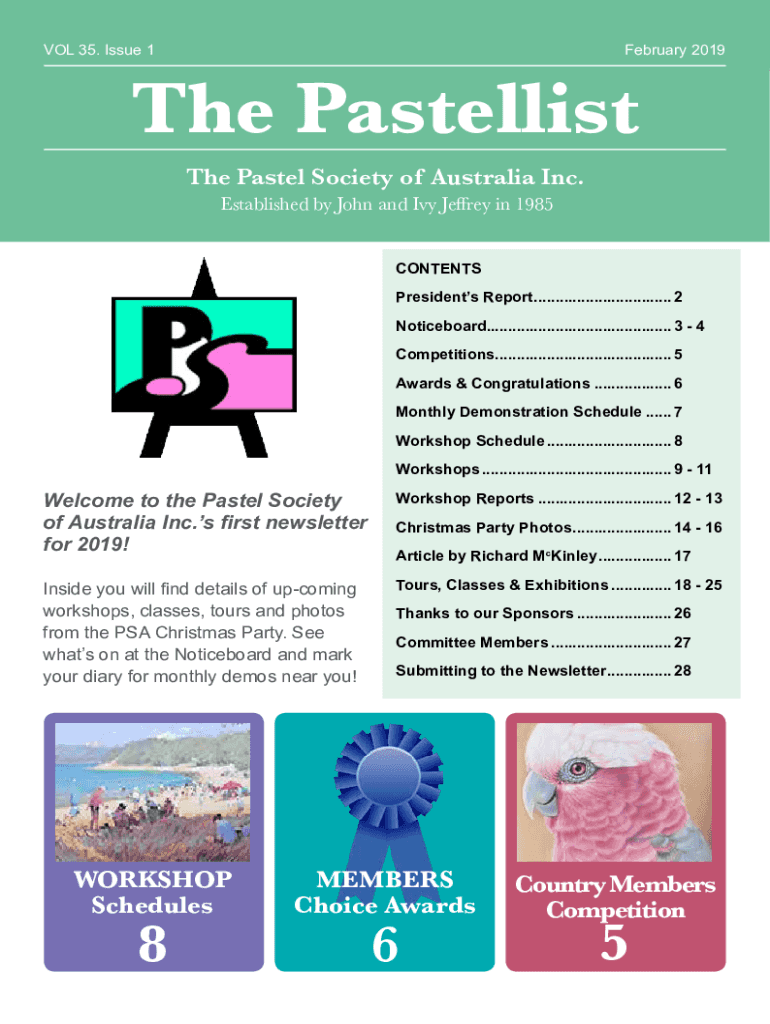 VOL 35. Issue 1February 2019The Pastel list The Pastel Society of Australia Inc. Established by John and Ivy Jeffrey in 1985 CONTENTSPresidents Report................................. 2 Noticeboard............................................