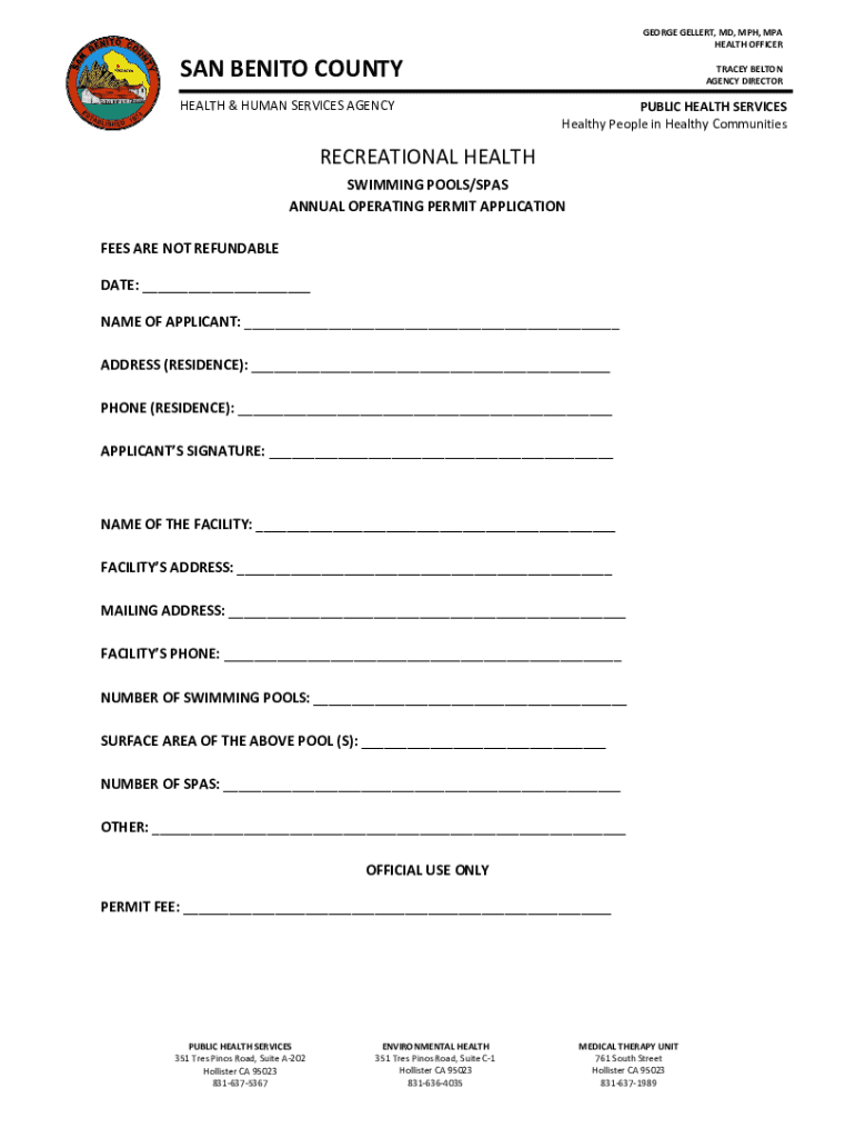 GEORGE GELLER, MD, MPH, MPA HEALTH OFFICER SAN BENITO COUNTY HEALTH & HUMAN SERVICES AGENCYTRACEY BELTON AGENCY DIRECTORPUBLIC HEALTH SERVICES Healthy People in Healthy CommunitiesRECREATIONAL HEALTH