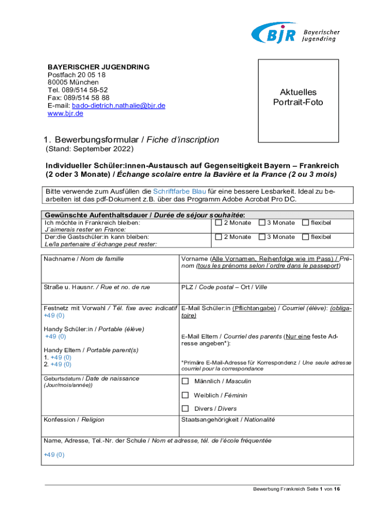 PortraitFoto1. Bewerbungsformular / Fiche inscription