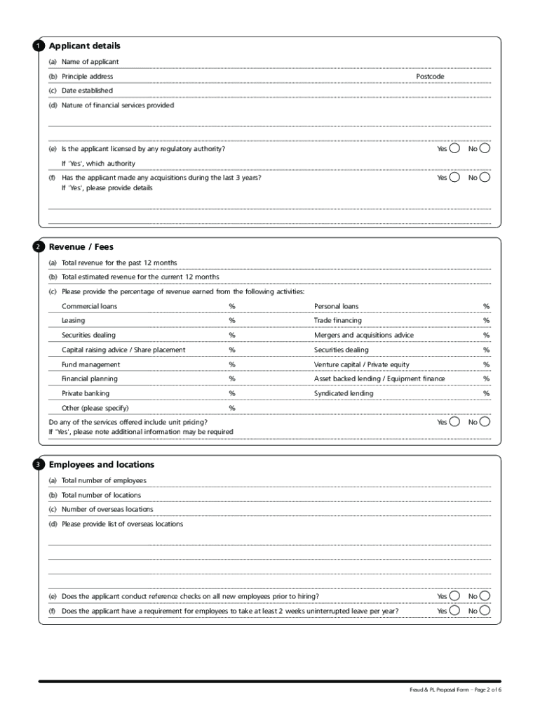 Fraud and Professional Liability Financial Institutions Proposal formCompleting the Proposal form 1. This application must be completed in full including all required attachments. 2. If more space