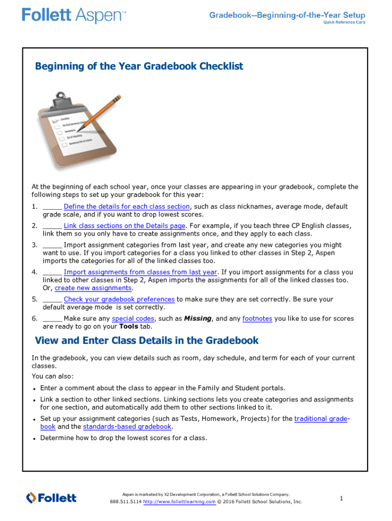 Beginning of the Year Grade book Checklist At the beginning of each school year, once your classes are appearing in your grade book, complete the following steps to set up your grade book for this