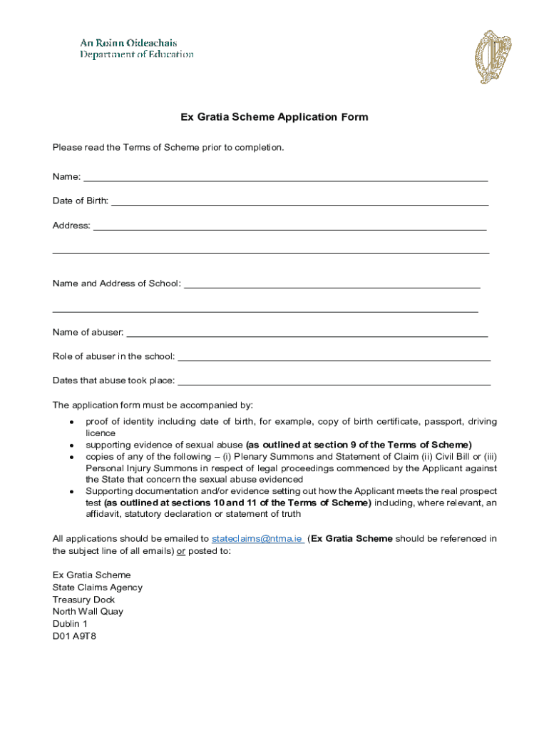 Get the free Ex Gratia Scheme Application Form