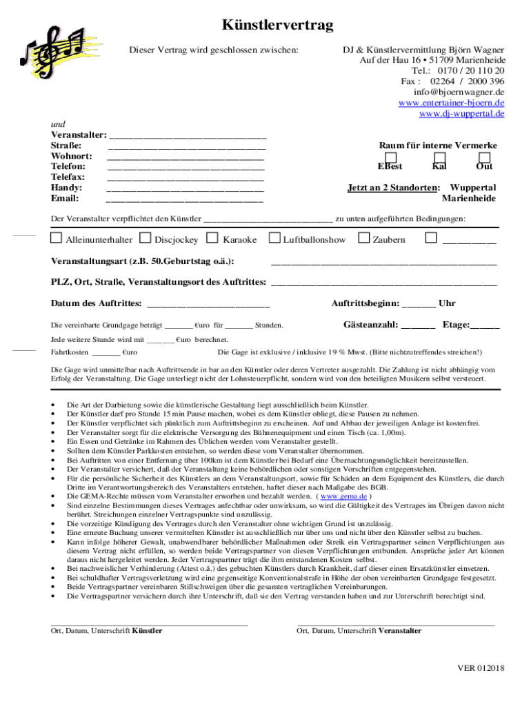 Der Managementvertrag im Musikbusiness can be filled out by detailing the responsibilities and expectations of both the artist and the manager.