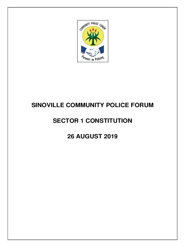 LINVILLE COMMUNITY POLICE FORUM SECTOR 1 CONSTITUTION 26 AUGUST 2019PREAMBLE In terms of Sections 18 to 23 of the South African Police Act 68 of 1995 (as amended from time to time), and the South