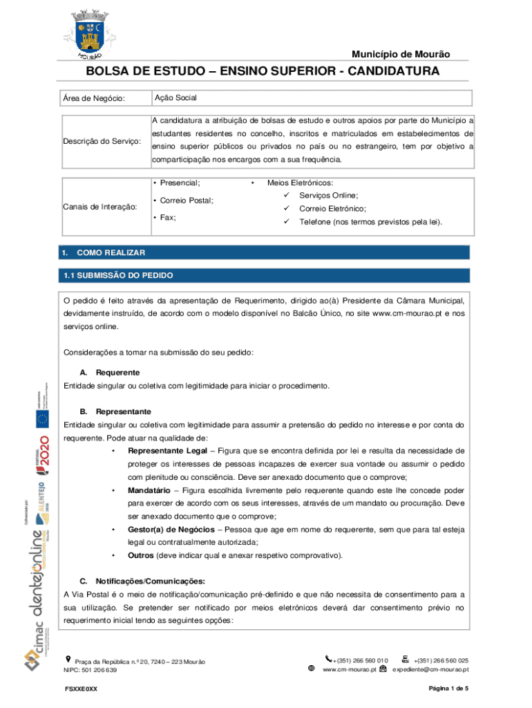 Municipal de MouroBOLSA DE ESCUDO ENSI NO SUPERIOR CANDIDATURE