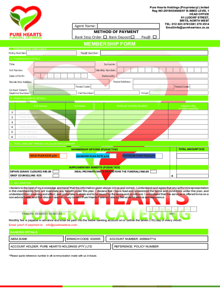 Get the free PH MEMBERSHIP FORM.cdr - Pure Hearts Funeral Catering
